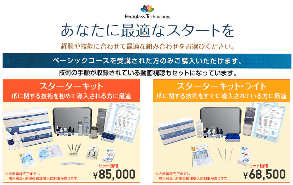 ペディグラスの施術に必須となる用具が一式揃っております。