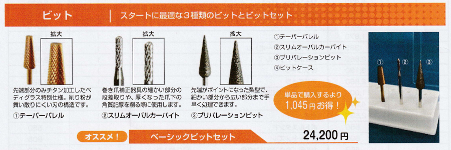 ペディグラスの施術に必須となる用具が一式揃っております。